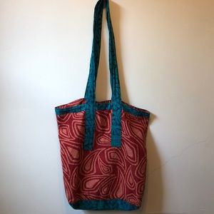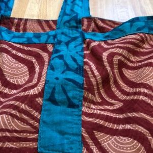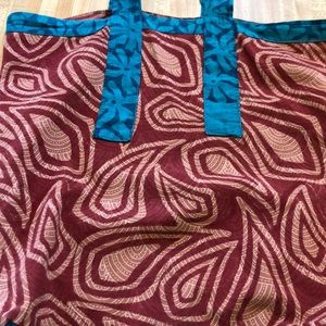 Cute colorful rotor made and bought in India. 14.5 inches wide, 13.5 inches long (just the bag, excluding straps), 27.5 inches long (including the straps), 4.5 inches wide.
