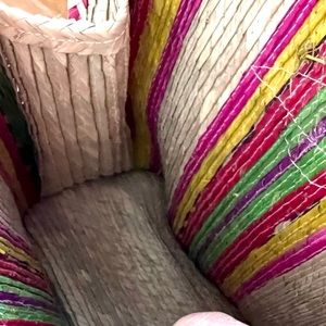 Lovely multi coloured top handle straw handbag in excellent condition. Roomy interior.