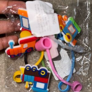Colorful Train Themed Reusable Food Grade Silicone Straw Sleeve Caps 6pcs NIP