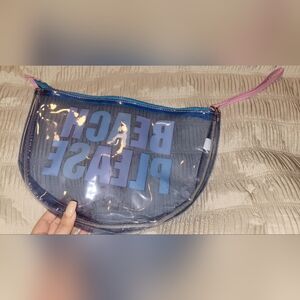Transparent pouch with colorful 'BEACH PLEASE' text. Perfect for beach outings. Used a few times excellent condition