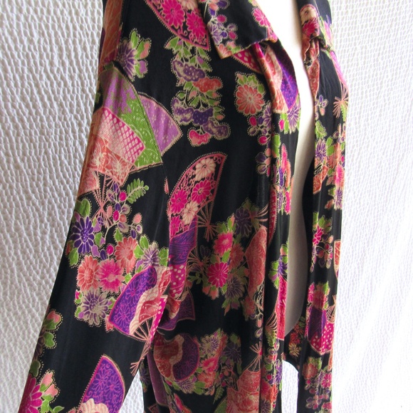 Colorful Travel Friendly Jacket Cardigan Top Pink Purple Asian Print 3X Womens