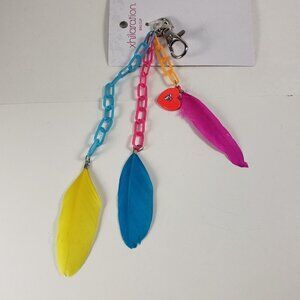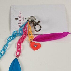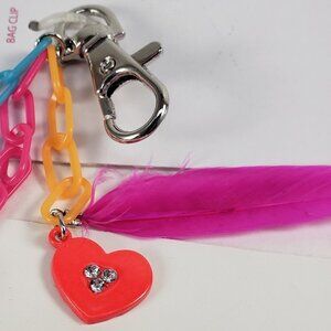 Wonderful Design of Xhilaration Bag Clip with 3 Colorful feathers, 3 Multi-color plastic chains link, and a beautiful heart with 3 shiny crystals.