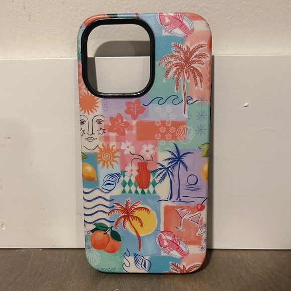 Enhance your phone with this vibrant tropical pattern case, featuring a mix of palm trees, fruits, and beach motifs. Perfect for adding a splash of color to your device.