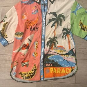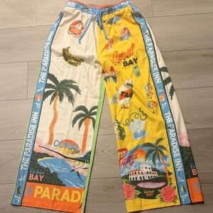 Never worn, adorable tropical fun set. Short sleeve button up top with collar and cuffed sleeves drawstring, loose fit pants. Size small New without tags.