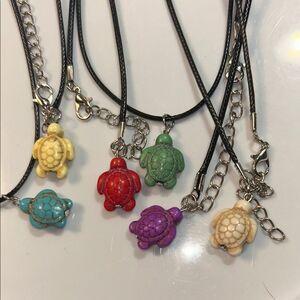 Set of turtle pendant necklaces in vibrant colors. Perfect for adding a playful touch to any outfit. 86