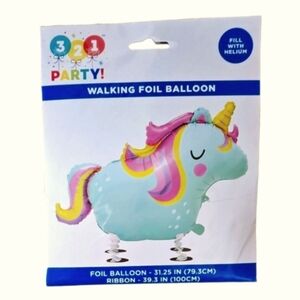1 x 31" blue walking unicorn foil balloon
