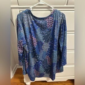 Vibrant v-neck blouse, purple and blue. Excellent condition.