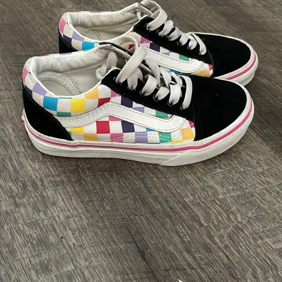 Rainbow and black classic vans with laces in perfect condition, only worn a few times. Very clean from non smoking house. Boys or girls- Kids size 12