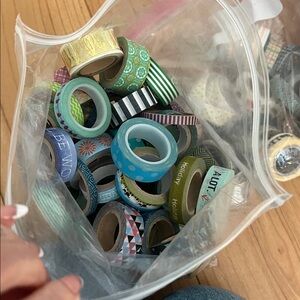 3 bags filled with crafting washi tape used for paper crafting, card making, journals and scrapbook art