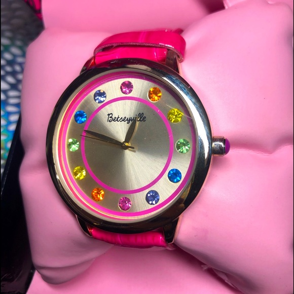 Cute Betsey Johnson watch. Still has plastic on the face. Needs new battery💗❤️🧡💛💚💙💜Comes with super cute gift box.
