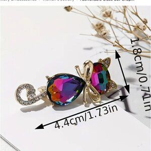 Elegant and vibrant, this gold-plated cat brooch features colorful rhinestones. Ideal for adding a touch of sparkle to any outfit.