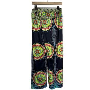 Colorful Wide Leg Elastic Waist Palazzo Pants, Size XL (see measurements)