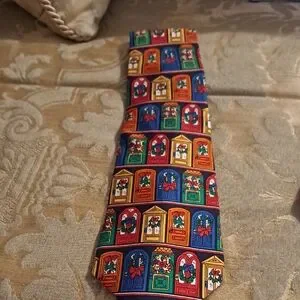 Add a splash of color to your outfit with this vibrant tie featuring a unique window pattern. Perfect for making a statement.