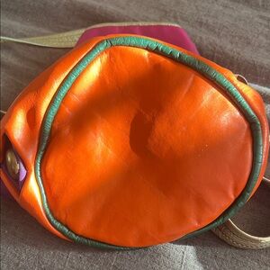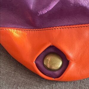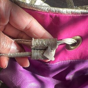 Vibrant and stylish, this women's drawstring bag features a striking combination of pink, purple, and orange. Perfect for adding a pop of color to any outfit.