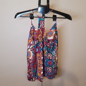 There is no size indicated, but I am estimating it to be a size small. Please check measurements before purchase. By Newbury Kustom.
