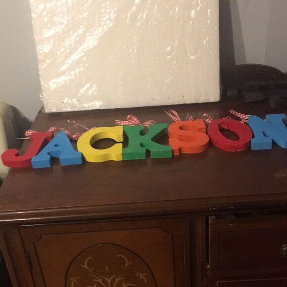 Vibrant wooden letters spelling out JACKSON . Perfect for room decor.