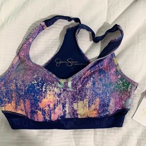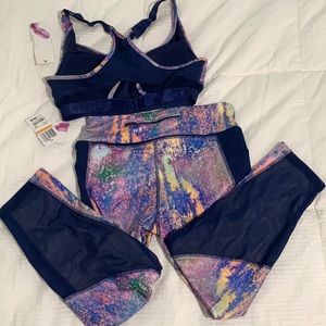 NWT!!! Jessica Simpson Warmup colorful marble matching workout set. Top has adjustable straps and band. Capri leggings with mesh back leg area and small zipper pocket in the back. So cute!!