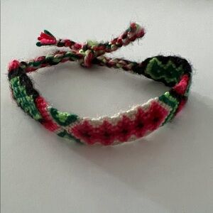 Add a pop of color to your outfit with this vibrant woven friendship bracelet set. Featuring a mix of pink, green, and black, these bracelets are perfect for any casual occasion.
