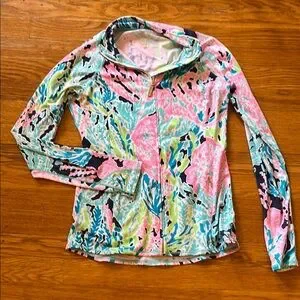 Chic jacket with vibrant patterns. Features a stylish zip-up design. Ideal for a bold look.