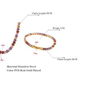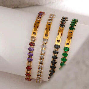 Colorful Zirconia 18K Gold Stainless Steel Waterproof Tennis Bracelet