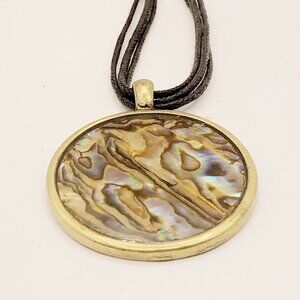 Colorful abalone pendant brass tone setting adjustable multi-strand cord