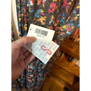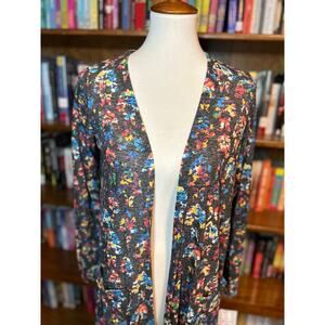 This is a beautiful, colorful duster- or maxi-length cardigan that is perfect for layering in this colder weather. Super soft. This runs slightly big, and should fit those who normally wear a small or medium. This is the Sarah style from LuLaRoe.