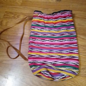 This colorful backpack with leather straps is in great used condition no holes no stains