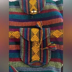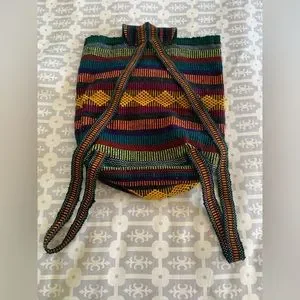 Colorful backpack. Pre-owned but in great condition. Do t recall the origin, either Mexico or Central America. Great for everyday and travel.