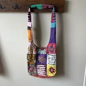 Colorful bag. Zips closed. Small zipper pocket on inside as well.