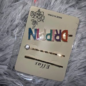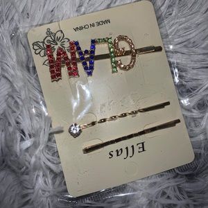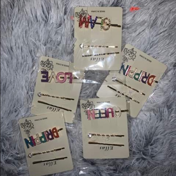 Colorful barrette pins with different words each pack comes with 2 gold bonus barrettes