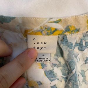 A New Day from Target blouse. Slight v neck detail with tie waist to make a peplum look. 3/4 sleeve