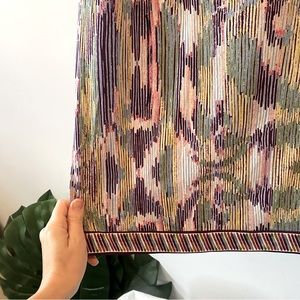 Purple graphic print purple and other vibrant colors boho dress. Flattering fit. Stretchy BCBG MAXAZRIA