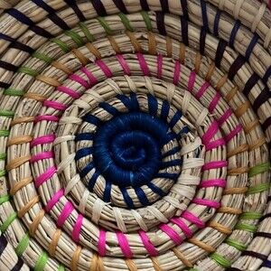 Excellent condition. Great for trinkets or key catch all. 7” diameter. 2.25” tall. Pine needles.