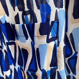 Colorful button down blouse.