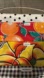 Vibrant fabric organizer with fruit and chili pepper designs. Features multiple colorful sections for organization.