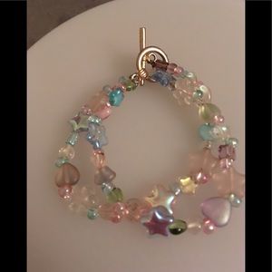 Colorful double bracelet with multiple colors stars circles and heart beads