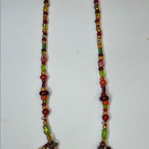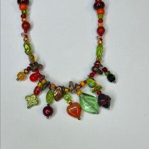 Colorful fall theme Beaded Necklace glass and acrylics orange red green yellow
