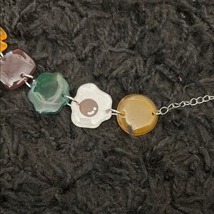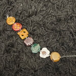 Add a splash of color to your outfit with this vibrant glass charm bracelet. Featuring a mix of red, yellow, green, and silver hues, this piece is perfect for any occasion.
