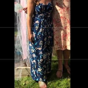 Perfect for spring and summer! Light and airy strapless jumpsuit with pockets! I am 5'0" for reference photo - lightly worn.