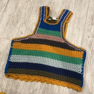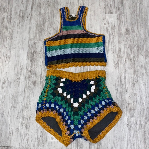 Size small top and bottom crochet set. Shorts are lined. Really good quality crochet. It’s heavy