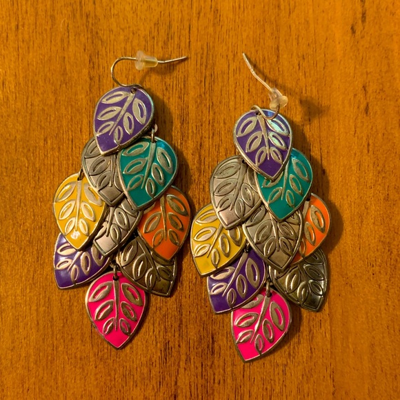 Colorful leaf dangle earrings
