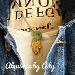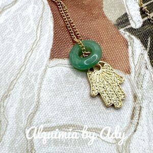 Colorful multi charms Hamsa Aventurine donut dainty pendant delicate necklace