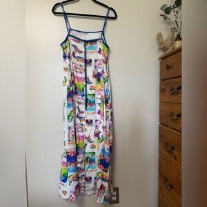 Vibrant sleeveless maxi dress with a colorful print. Excellent pre owned condition, perfect for a vacation outfit. Adjustable top to ensure a perfect fit.