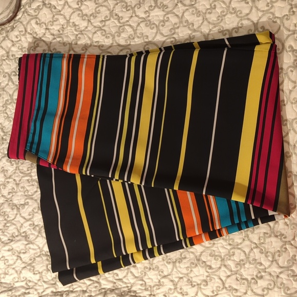 Fun, colorful, wide leg pants from New York and Company. There are front pockets and faux back pockets. Inseam is about 33". Great for tall gals. I'm 5'11 and wear a size 12 but with the elastic on back could also fit a 14.
