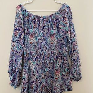 Off the shoulders colorful pattern romper with elastic waist