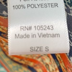Colorful patterned polyester high low tank - lightweight and perfect for summer, orange base color, size small, rounded neckline