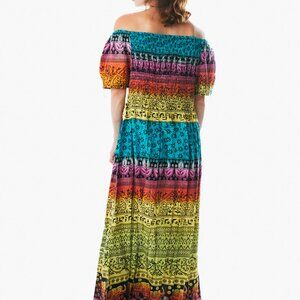 Colorful peasant maxi dress short sleeve off shoulder boho summer floral tie dye