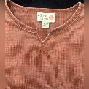 Colorful planet kids waffle top, long sleeve, V neck, sz 7/8
