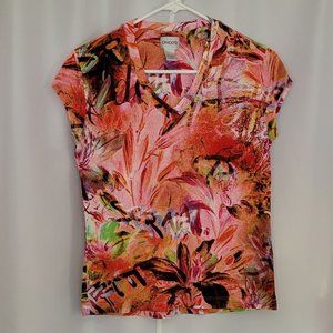 Colorful print Chico's shirt. V-neck. Great condition. No rips, stains or tears. From a smoke free and pet free home.