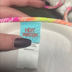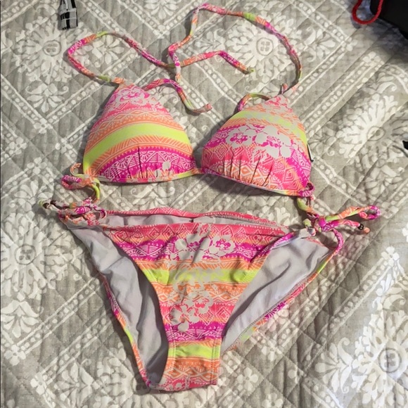 Super bright & colorful padded bikini! Bottoms are a size Large but the top is a size Medium.